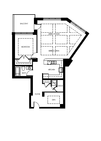 The Wallaceburg is a beautiful One Bedroom plus Den corner suite with a spacious design. Its oversized, angled living room allows for a tremendous view of the Thames River and Tecumseh Park.